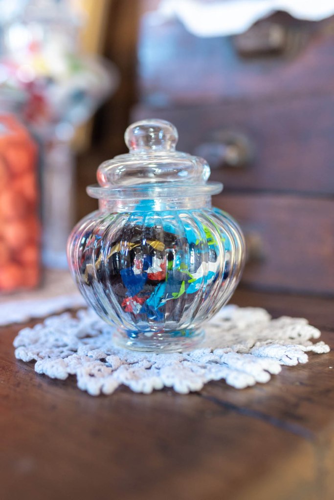 Ensemble de jolies bonbonnières dépareillées de tailles différentes en verre composé de 9 bonbonnières.