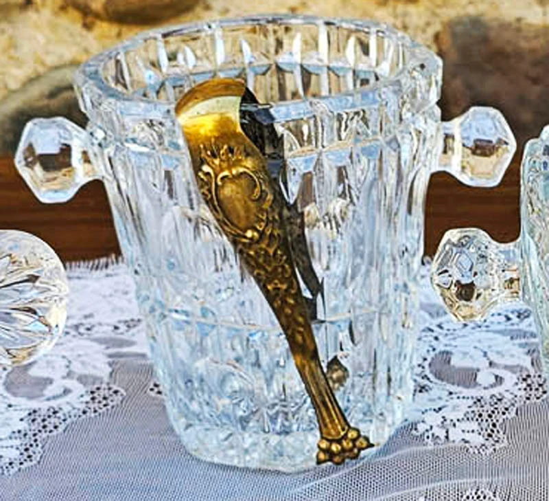 Seaux à glace anciens en verre ou en cristal, idéals sur votre buffet de cocktail ou vin d’honneur ou encore sur votre bar à whisky.
