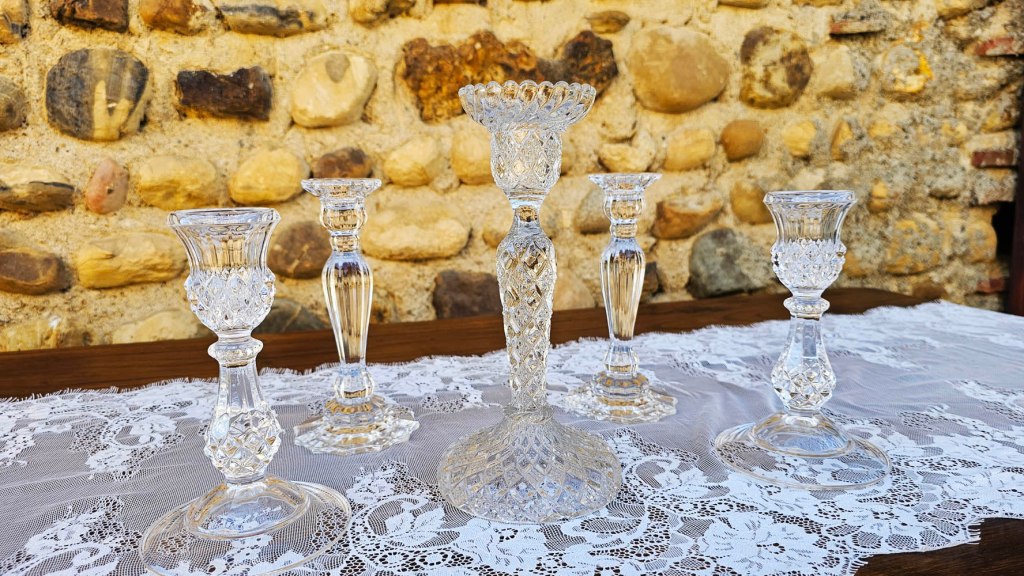 Ces bougeoirs anciens de différentes formes et tailles en verre ou en cristal apporteront de la légèreté et une note chic à votre décoration.