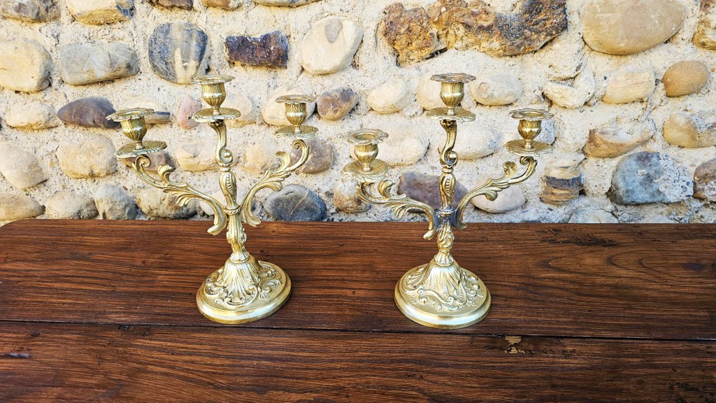 Ces bougeoirs dépareillés anciens en laiton doré apporteront charme et authenticité à votre décoration.