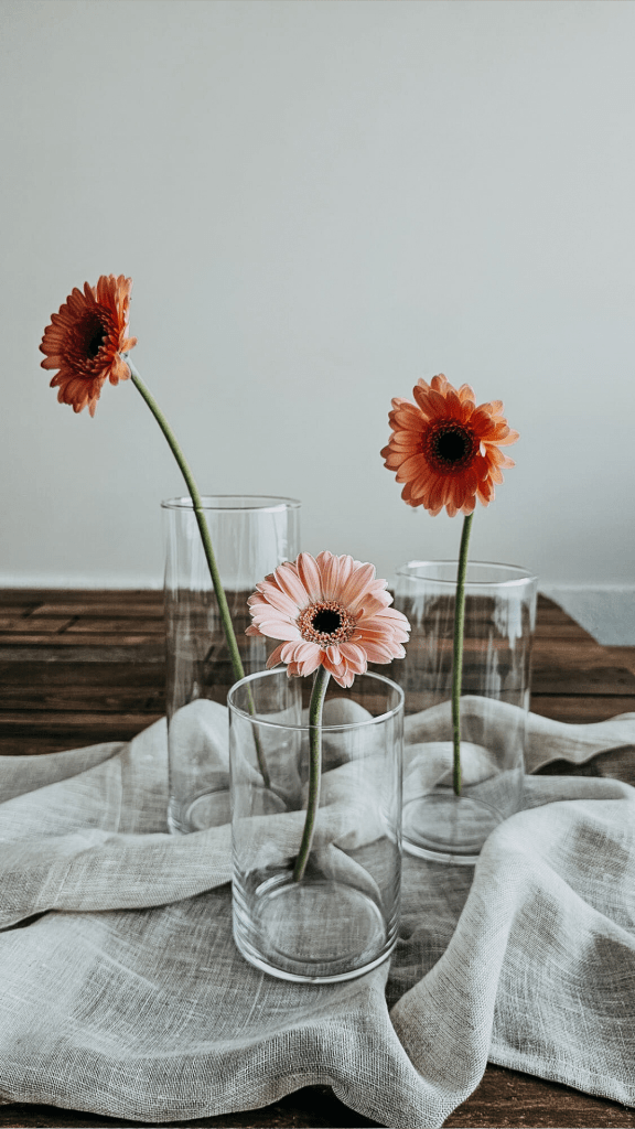 Ces vases en cristal dépareillés donneront légèreté et transparence à votre réception.