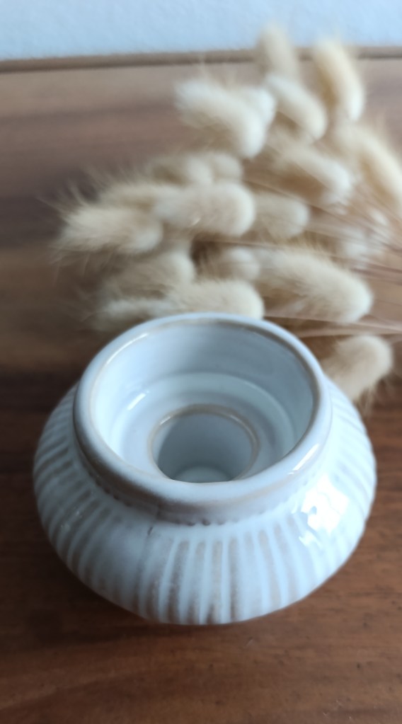 Ce bougeoir en faïence, avec ses teintes douces de beige et de blanc, apportera une touche de raffinement subtil à votre décoration.