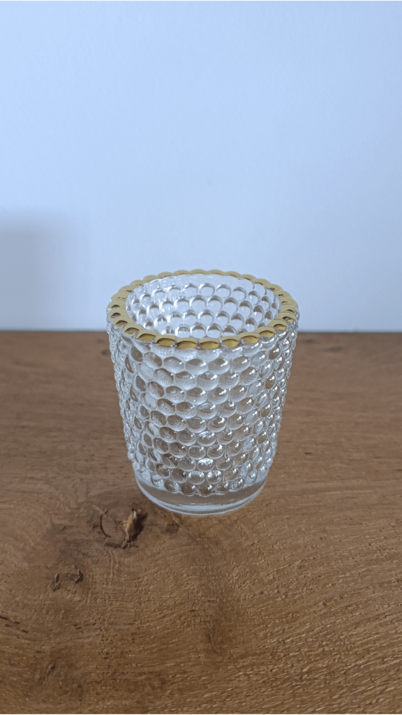 Apportez une touche raffinée à votre réception avec ce photophore en verre orné d’un liseré doré. Ses délicats picots boule diffusent une lumière douce et chaleureuse, parfait pour une ambiance cosy et élégante.