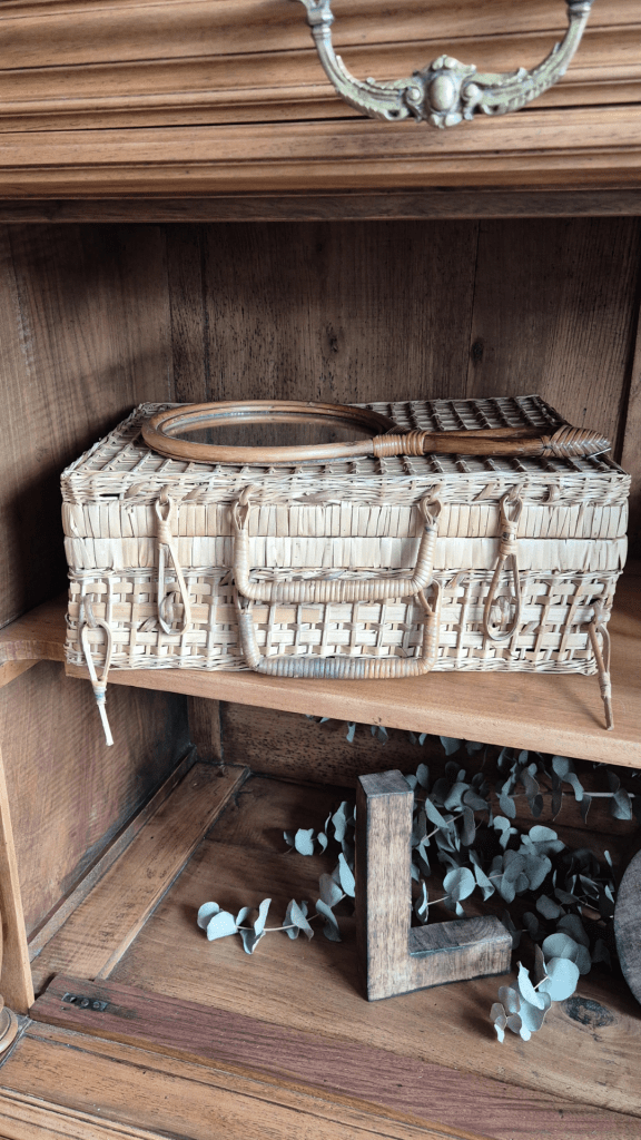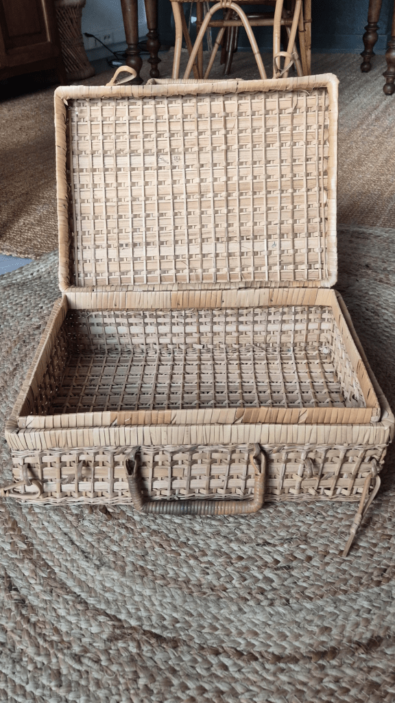 Grande malle en osier ancienne, idéal dans une déco vintage champêtre.