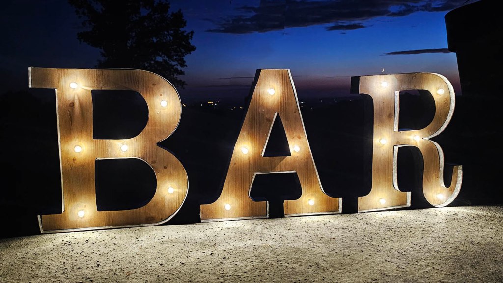 Lettres BAR lumineuses en bois et métal éclairage blanc chaud, idéales pour décorer votre bar quel qu’il soit.