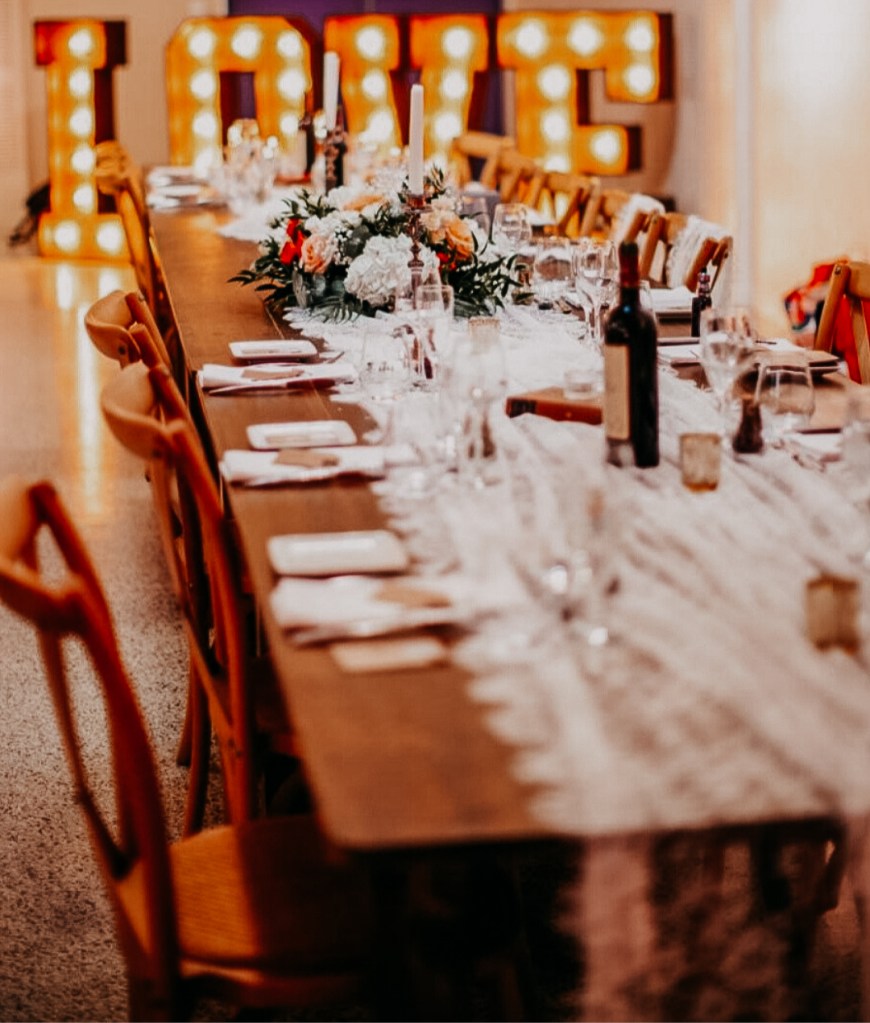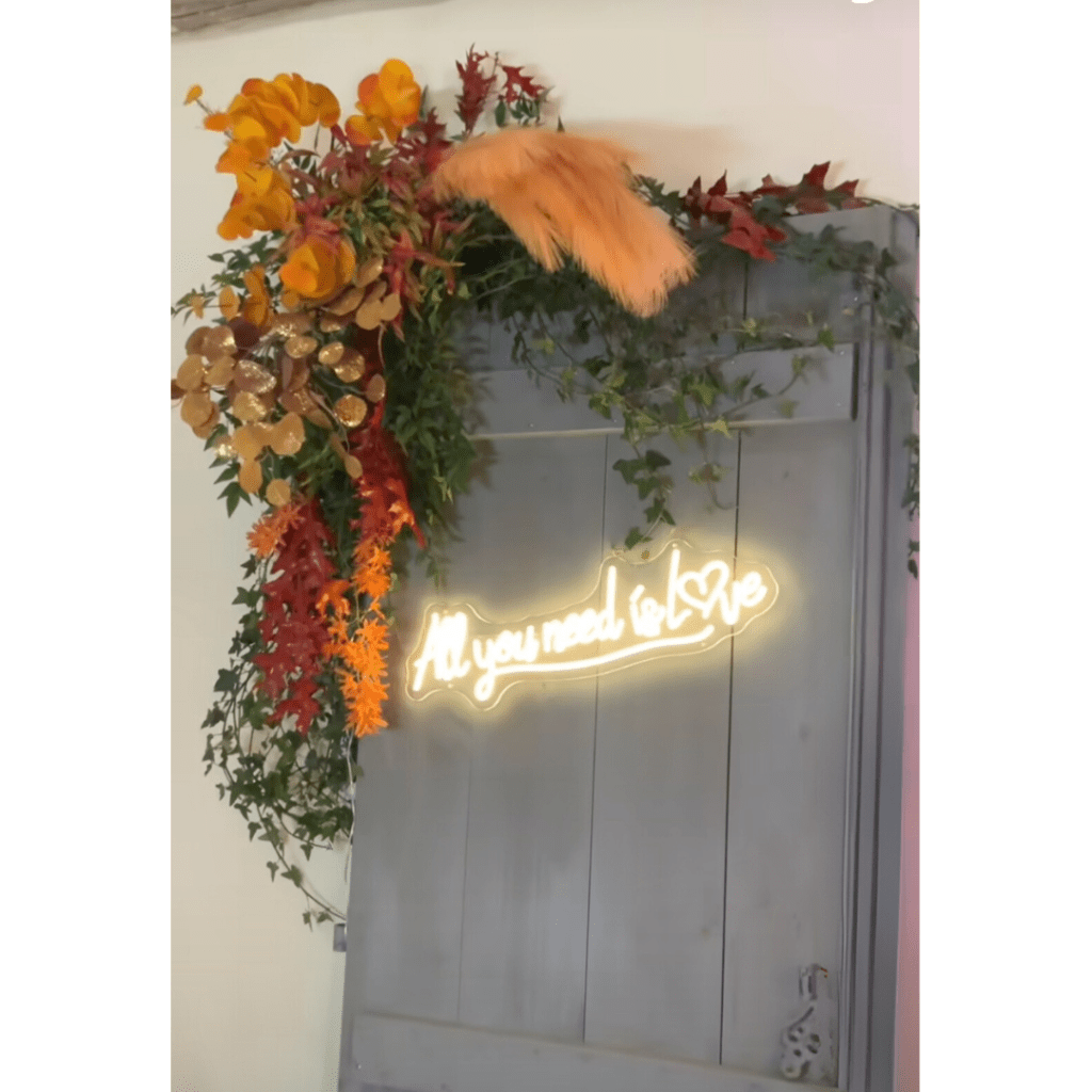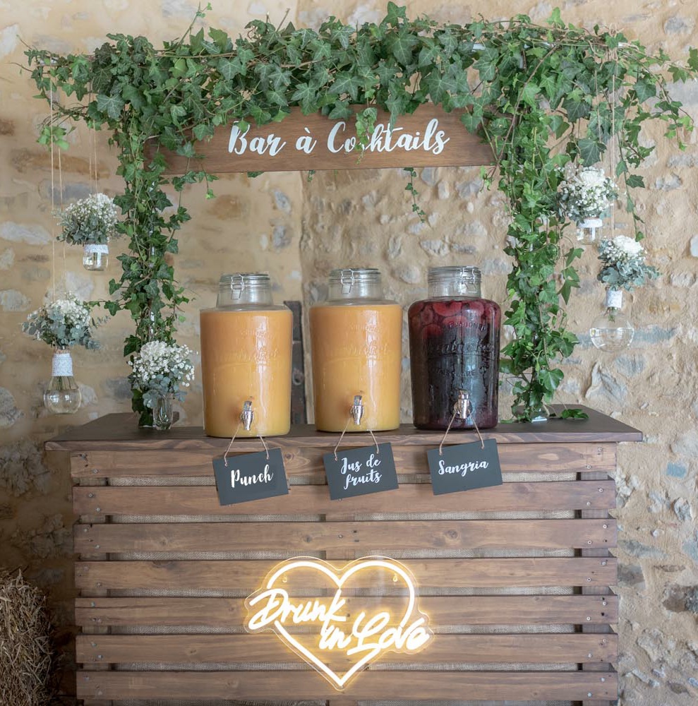 Le néon est le nouvel élément phare et tendance de décoration, vous pourrez le placer à l’arrière de votre table d’honneur, coin photo ou cocktail ou sur notre mur de champagne.