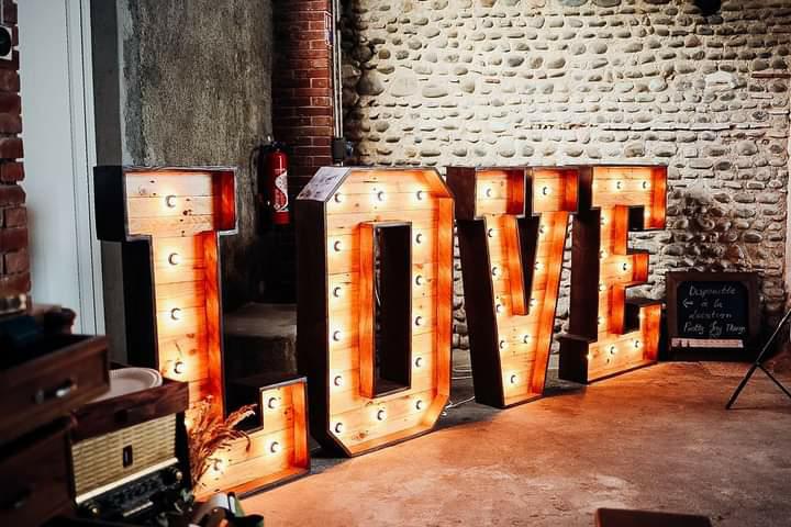 Love lumineux en bois effet vintage XXL , fabriqué avec amour par nos soins. Quelque soit l’endroit ou vous le placerez, il donnera l’effet Whaouuu ! à votre réception.