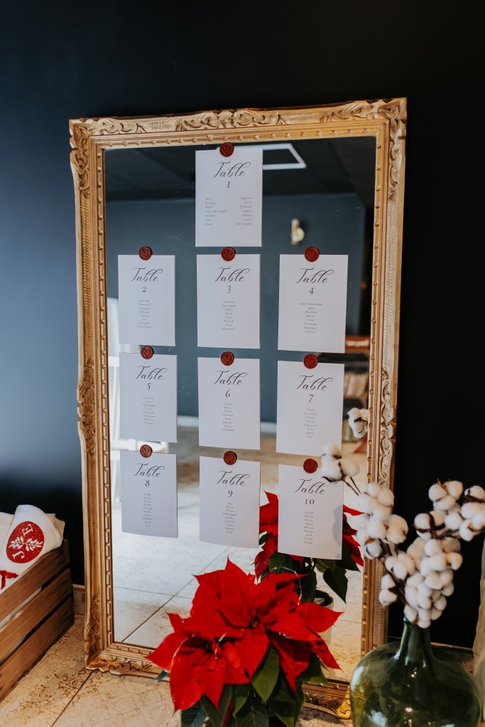 Ce grand miroir doré est parfait pour accueillir votre plan de table, votre menu ou comme panneau de bienvenue.