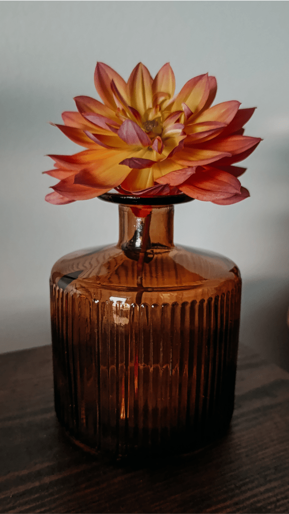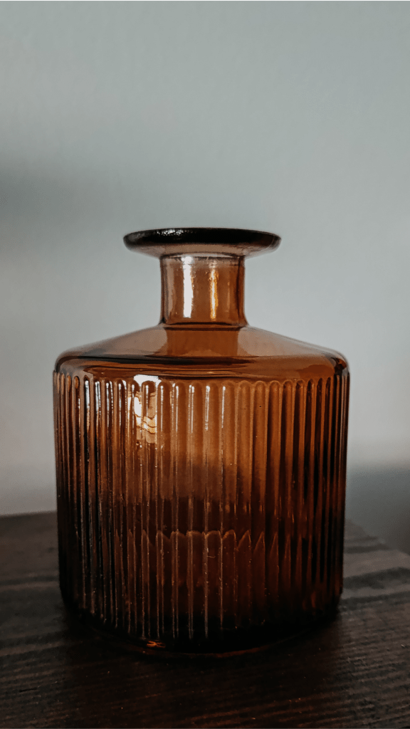 Vase en verre ambré strié