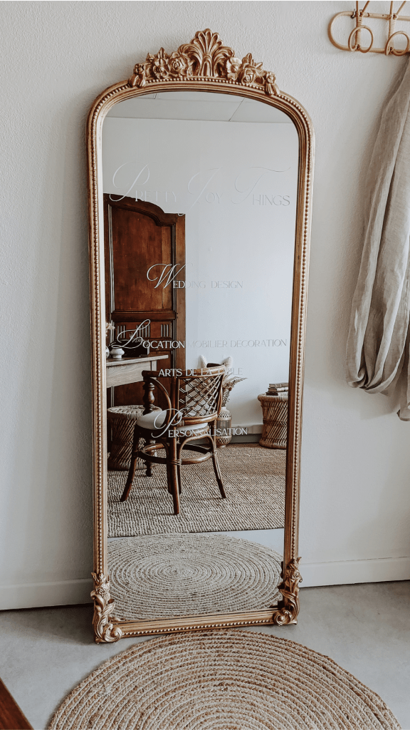 Mettez en valeur votre décoration de mariage avec ce magnifique grand miroir doré à la fois élégant et raffiné. Parfait pour accueillir vos invités, afficher votre plan de table ou une belle citation, il apportera une touche de charme et de prestige à votre événement.