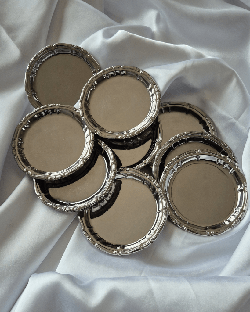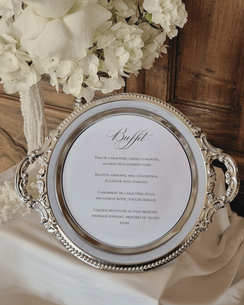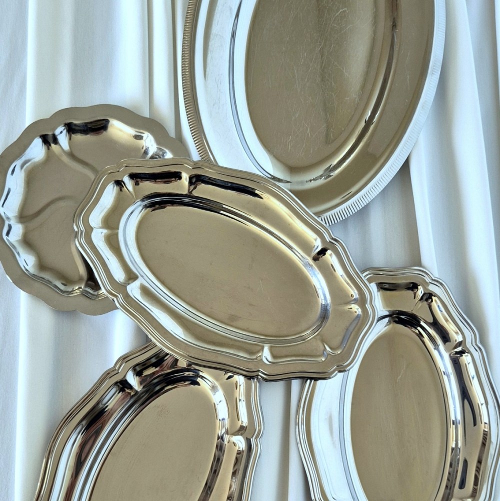 Chaque pièce de notre collection argentée semble murmurer des histoires d’élégance et de raffinement. Ancienne ou patinée par le temps, chaque coupe, plat, saladier ou seau à champagne possède un charme unique, avec ses légères rayures et traces d’usage qui témoignent de son vécu. Ces détails donnent à votre table une authenticité singulière et illuminent vos brunchs, vins d’honneur et cocktails dînatoires, transformant chaque buffet en un véritable tableau lumineux où la lumière danse et les instants deviennent précieux.